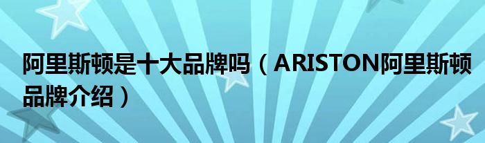 大家好,小源来为大家解答以上问题。阿里斯顿是十大品牌吗,ARISTON阿里斯顿品牌介绍很多人还不知道,现在让我们一起来看看吧!