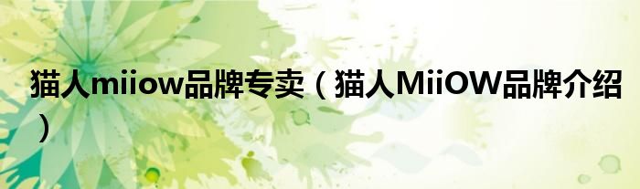 大家好,小源来为大家解答以上问题。猫人miiow品牌专卖,猫人MiiOW品牌介绍很多人还不知道,现在让我们一起来看看吧!