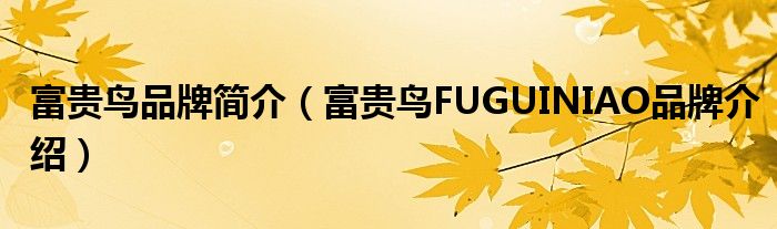 大家好,小源来为大家解答以上问题。富贵鸟品牌简介,富贵鸟FUGUINIAO品牌介绍很多人还不知道,现在让我们一起来看看吧!
