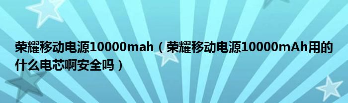 大家好,小常来为大家解答以上问题。荣耀移动电源10000mah,荣耀移动电源10000mAh用的什么电芯啊安全吗很多人还不知道,现在让我们一起来看看吧!