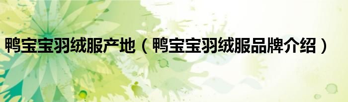 鸭宝宝羽绒服产地(鸭宝宝羽绒服品牌介绍)
