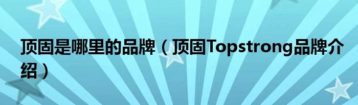 大家好,小源来为大家解答以上问题。顶固是哪里的品牌,顶固Topstrong品牌介绍很多人还不知道,现在让我们一起来看看吧!