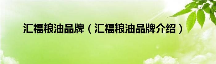 大家好,小源来为大家解答以上问题。汇福粮油品牌,汇福粮油品牌介绍很多人还不知道,现在让我们一起来看看吧!