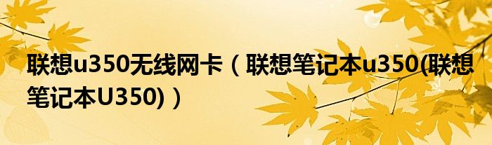 大家好,小常来为大家解答以上问题。联想u350无线网卡,联想笔记本u350(联想笔记本U350)很多人还不知道,现在让我们一起来看看吧!
