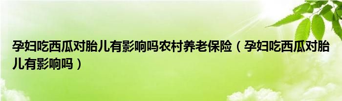 大家好,linda来为大家解答以上的问题。孕妇吃西瓜对胎儿有影响吗农村养老保险,孕妇吃西瓜对胎儿有影响吗很多人还不知道,现在让我们一起来看看吧!