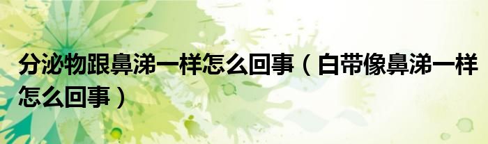 大家好,linda来为大家解答以上的问题。分泌物跟鼻涕一样怎么回事,白带像鼻涕一样怎么回事很多人还不知道,现在让我们一起来看看吧!