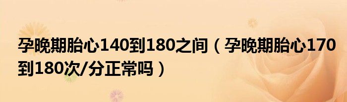 大家好,linda来为大家解答以上的问题。孕晚期胎心140到180之间,孕晚期胎心170到180次/分正常吗很多人还不知道,现在让我们一起来看看吧!