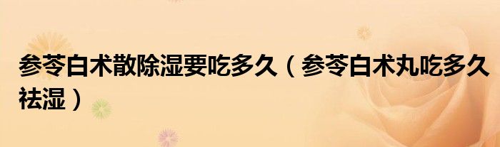 大家好,linda来为大家解答以上的问题。参苓白术散除湿要吃多久,参苓白术丸吃多久祛湿很多人还不知道,现在让我们一起来看看吧!