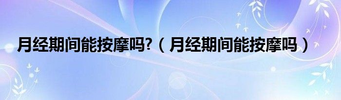 大家好,linda来为大家解答以上的问题。月经期间能按摩吗?,月经期间能按摩吗很多人还不知道,现在让我们一起来看看吧!