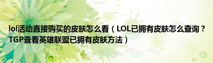 大家好,今天小悦来为大家解答以上问题。lol活动直接购买的皮肤怎么看,LOL已拥有皮肤怎么查询?TGP查看英雄联盟已拥有皮肤方法很多人还不知道,现在让我们一起来看看吧!