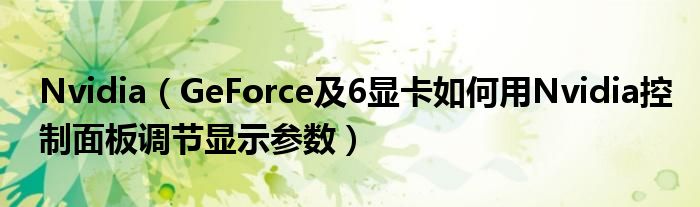 大家好,今天小悦来为大家解答以上问题。Nvidia,GeForce及6显卡如何用Nvidia控制面板调节显示参数很多人还不知道,现在让我们一起来看看吧!