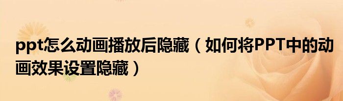 大家好,今天小悦来为大家解答以上问题。ppt怎么动画播放后隐藏,如何将PPT中的动画效果设置隐藏很多人还不知道,现在让我们一起来看看吧!