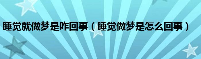 大家好,linda来为大家解答以上的问题。睡觉就做梦是咋回事,睡觉做梦是怎么回事很多人还不知道,现在让我们一起来看看吧!