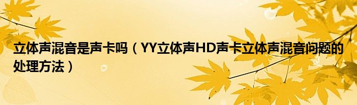 大家好,今天小悦来为大家解答以上问题。立体声混音是声卡吗,YY立体声HD声卡立体声混音问题的处理方法很多人还不知道,现在让我们一起来看看吧!