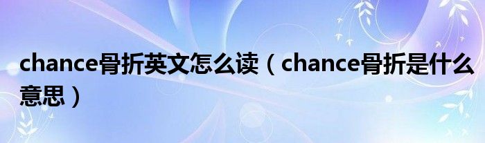 大家好,linda来为大家解答以上的问题。chance骨折英文怎么读,chance骨折是什么意思很多人还不知道,现在让我们一起来看看吧!