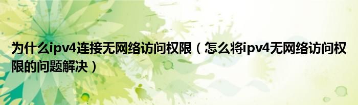大家好,今天小悦来为大家解答以上问题。为什么ipv4连接无网络访问权限,怎么将ipv4无网络访问权限的问题解决很多人还不知道,现在让我们一起来看看吧!