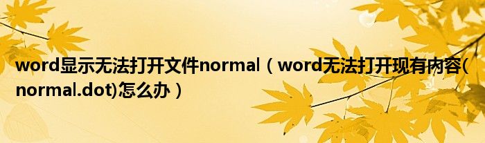 大家好,今天小悦来为大家解答以上问题。word显示无法打开文件normal,word无法打开现有内容(normal.dot)怎么办很多人还不知道,现在让我们一起来看看吧!