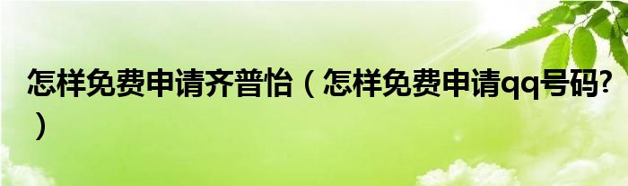 大家好,今天小悦来为大家解答以上问题。怎样免费申请齐普怡,怎样免费申请qq号码?很多人还不知道,现在让我们一起来看看吧!