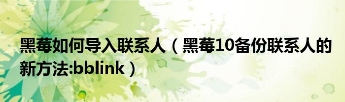大家好,今天小悦来为大家解答以上问题。黑莓如何导入联系人,黑莓10备份联系人的新方法:bblink很多人还不知道,现在让我们一起来看看吧!