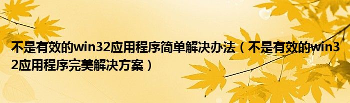 大家好,今天小悦来为大家解答以上问题。不是有效的win32应用程序简单解决办法,不是有效的win32应用程序完美解决方案很多人还不知道,现在让我们一起来看看吧!
