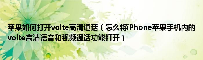大家好,今天小悦来为大家解答以上问题。苹果如何打开volte高清通话,怎么将iPhone苹果手机内的volte高清语音和视频通话功能打开很多人还不知道,现在让我们一起来看看吧!