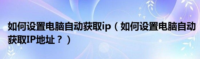 大家好,今天小悦来为大家解答以上问题。如何设置电脑自动获取ip,如何设置电脑自动获取IP地址?很多人还不知道,现在让我们一起来看看吧!