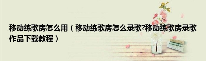 大家好,今天小悦来为大家解答以上问题。移动练歌房怎么用,移动练歌房怎么录歌?移动练歌房录歌作品下载教程很多人还不知道,现在让我们一起来看看吧!