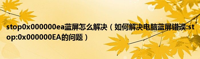 大家好,今天小悦来为大家解答以上问题。stop0x000000ea蓝屏怎么解决,如何解决电脑蓝屏错误:stop:0x000000EA的问题很多人还不知道,现在让我们一起来看看吧!
