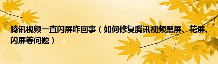 大家好,今天小悦来为大家解答以上问题。腾讯视频一直闪屏咋回事,如何修复腾讯视频黑屏、花屏、闪屏等问题很多人还不知道,现在让我们一起来看看吧!