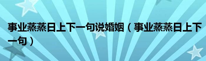 大家好,小晋来为大家解答以下问题,关于事业蒸蒸日上下一句说婚姻,事业蒸蒸日上下一句很多人还不知道,今天让我们一起来看看吧!