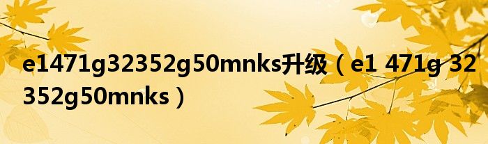 大家好,雨雨来为大家解答以上问题,e1471g32352g50mnks升级,e1 471g 32352g50mnks很多人还不知道,现在让我们一起来看看吧!