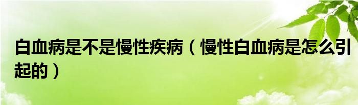 大家好,linda来为大家解答以上的问题。白血病是不是慢性疾病,慢性白血病是怎么引起的很多人还不知道,现在让我们一起来看看吧!