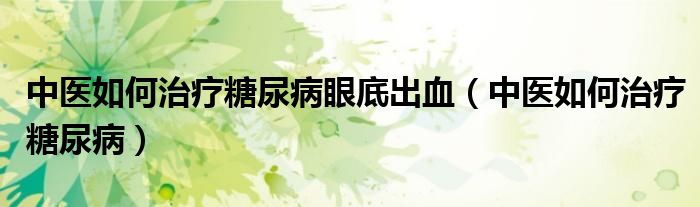 大家好,linda来为大家解答以上的问题。中医如何治疗糖尿病眼底出血,中医如何治疗糖尿病很多人还不知道,现在让我们一起来看看吧!