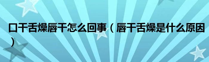 大家好,linda来为大家解答以上的问题。口干舌燥唇干怎么回事,唇干舌燥是什么原因很多人还不知道,现在让我们一起来看看吧!