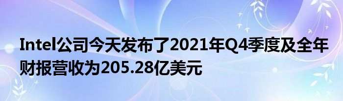 Intel公司今天发布了2021年Q4季度及全年财报,营收为205.28亿美元,与上年同期的199.78亿美元相比增长3%。
