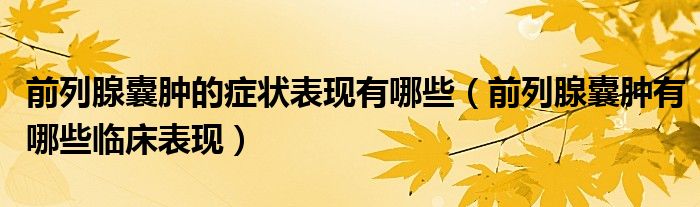 大家好,linda来为大家解答以上的问题。前列腺囊肿的症状表现有哪些,前列腺囊肿有哪些临床表现很多人还不知道,现在让我们一起来看看吧!