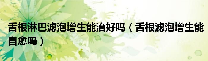 大家好,linda来为大家解答以上的问题。舌根淋巴滤泡增生能治好吗,舌根滤泡增生能自愈吗很多人还不知道,现在让我们一起来看看吧!