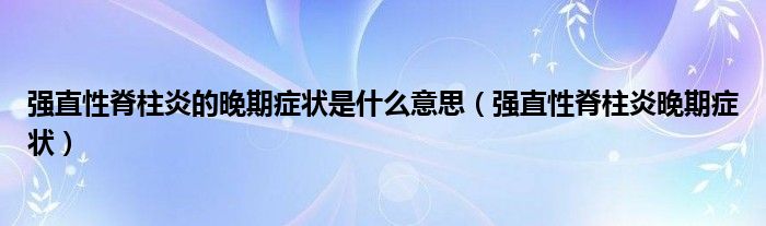 大家好,linda来为大家解答以上的问题。强直性脊柱炎的晚期症状是什么意思,强直性脊柱炎晚期症状很多人还不知道,现在让我们一起来看看吧!