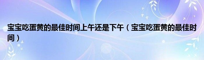 大家好,linda来为大家解答以上的问题。宝宝吃蛋黄的最佳时间上午还是下午,宝宝吃蛋黄的最佳时间很多人还不知道,现在让我们一起来看看吧!