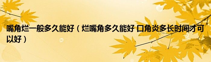 大家好,linda来为大家解答以上的问题。嘴角烂一般多久能好,烂嘴角多久能好 口角炎多长时间才可以好很多人还不知道,现在让我们一起来看看吧!
