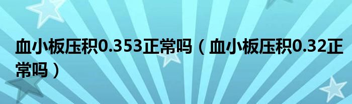 大家好,linda来为大家解答以上的问题。血小板压积0.353正常吗,血小板压积0.32正常吗很多人还不知道,现在让我们一起来看看吧!