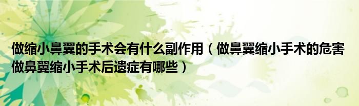 大家好,linda来为大家解答以上的问题。做缩小鼻翼的手术会有什么副作用,做鼻翼缩小手术的危害 做鼻翼缩小手术后遗症有哪些很多人还不知道,现在让我们一起来看看吧!