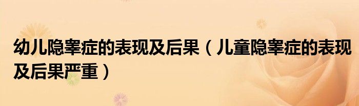 大家好,linda来为大家解答以上的问题。幼儿隐睾症的表现及后果,儿童隐睾症的表现及后果严重很多人还不知道,现在让我们一起来看看吧!