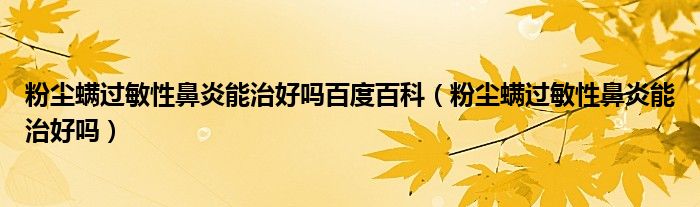 大家好,linda来为大家解答以上的问题。粉尘螨过敏性鼻炎能治好吗百度百科,粉尘螨过敏性鼻炎能治好吗很多人还不知道,现在让我们一起来看看吧!
