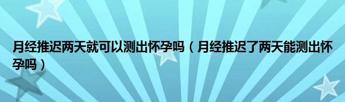 大家好,linda来为大家解答以上的问题。月经推迟两天就可以测出怀孕吗,月经推迟了两天能测出怀孕吗很多人还不知道,现在让我们一起来看看吧!