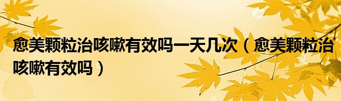 大家好,linda来为大家解答以上的问题。愈美颗粒治咳嗽有效吗一天几次,愈美颗粒治咳嗽有效吗很多人还不知道,现在让我们一起来看看吧!