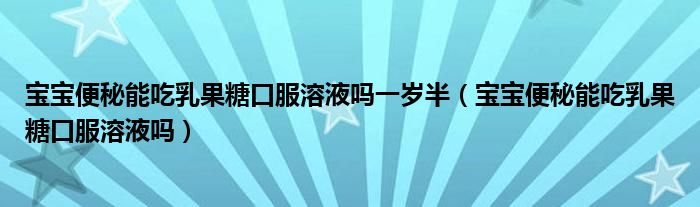 大家好,linda来为大家解答以上的问题。宝宝便秘能吃乳果糖口服溶液吗一岁半,宝宝便秘能吃乳果糖口服溶液吗很多人还不知道,现在让我们一起来看看吧!