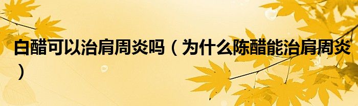 大家好,linda来为大家解答以上的问题。白醋可以治肩周炎吗,为什么陈醋能治肩周炎很多人还不知道,现在让我们一起来看看吧!