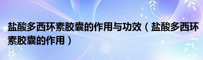 大家好,linda来为大家解答以上的问题。盐酸多西环素胶囊的作用与功效,盐酸多西环素胶囊的作用很多人还不知道,现在让我们一起来看看吧!