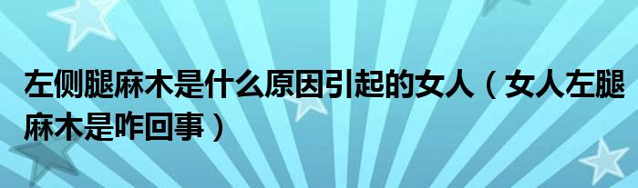 大家好,linda来为大家解答以上的问题。左侧腿麻木是什么原因引起的女人,女人左腿麻木是咋回事很多人还不知道,现在让我们一起来看看吧!